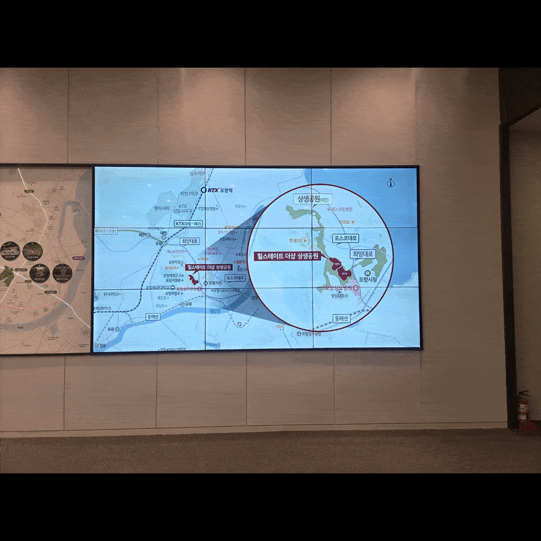 에이브이팝.AVPOP.포항 힐스테이트 더샵 홍보관 멀티비전, 터치, DID 모니터 설치사례 및 시공사례